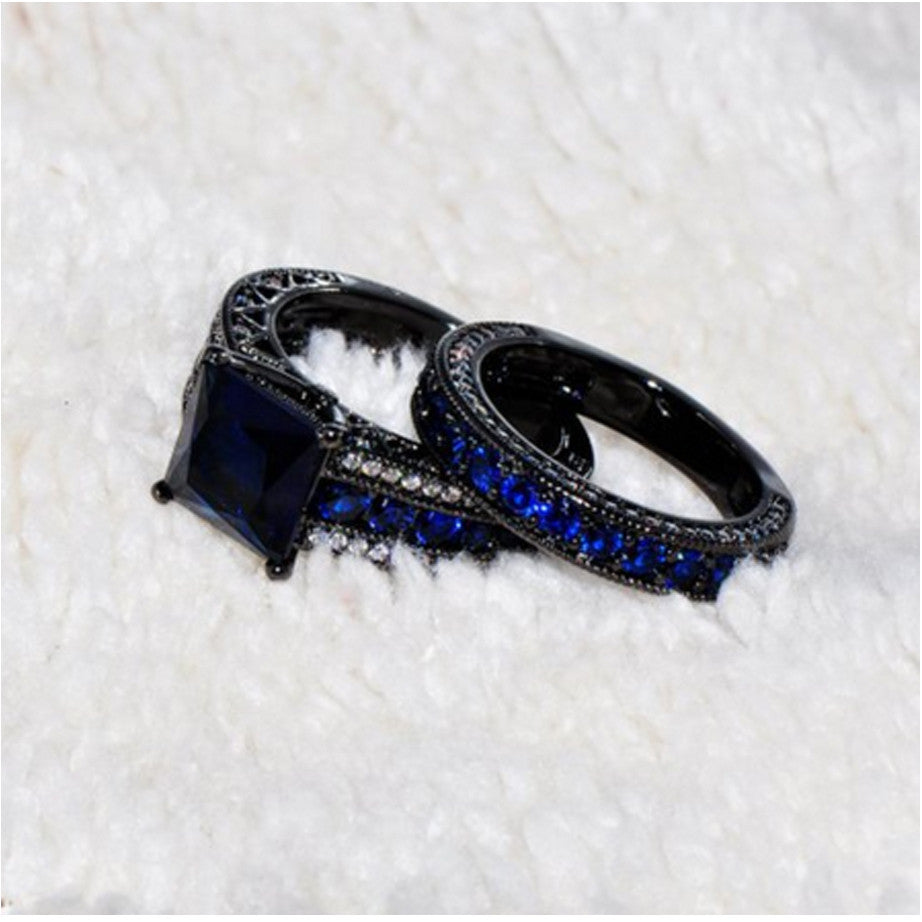 Beautiful Black Rings Set - Gold Plated Cubic Sapphire Simulated Stone