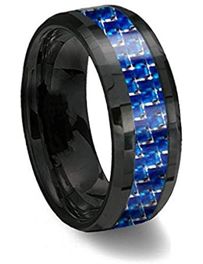 Brand New Edition*** Gorgeous Black and Blue 8mm Tungsten Carbon Fiber Ring