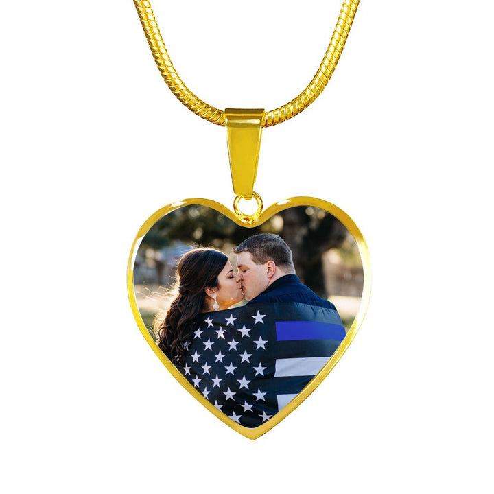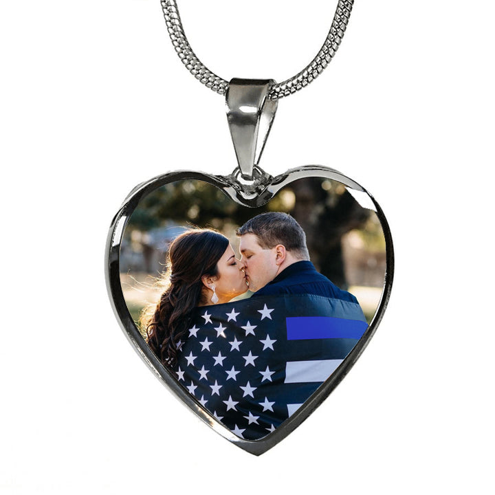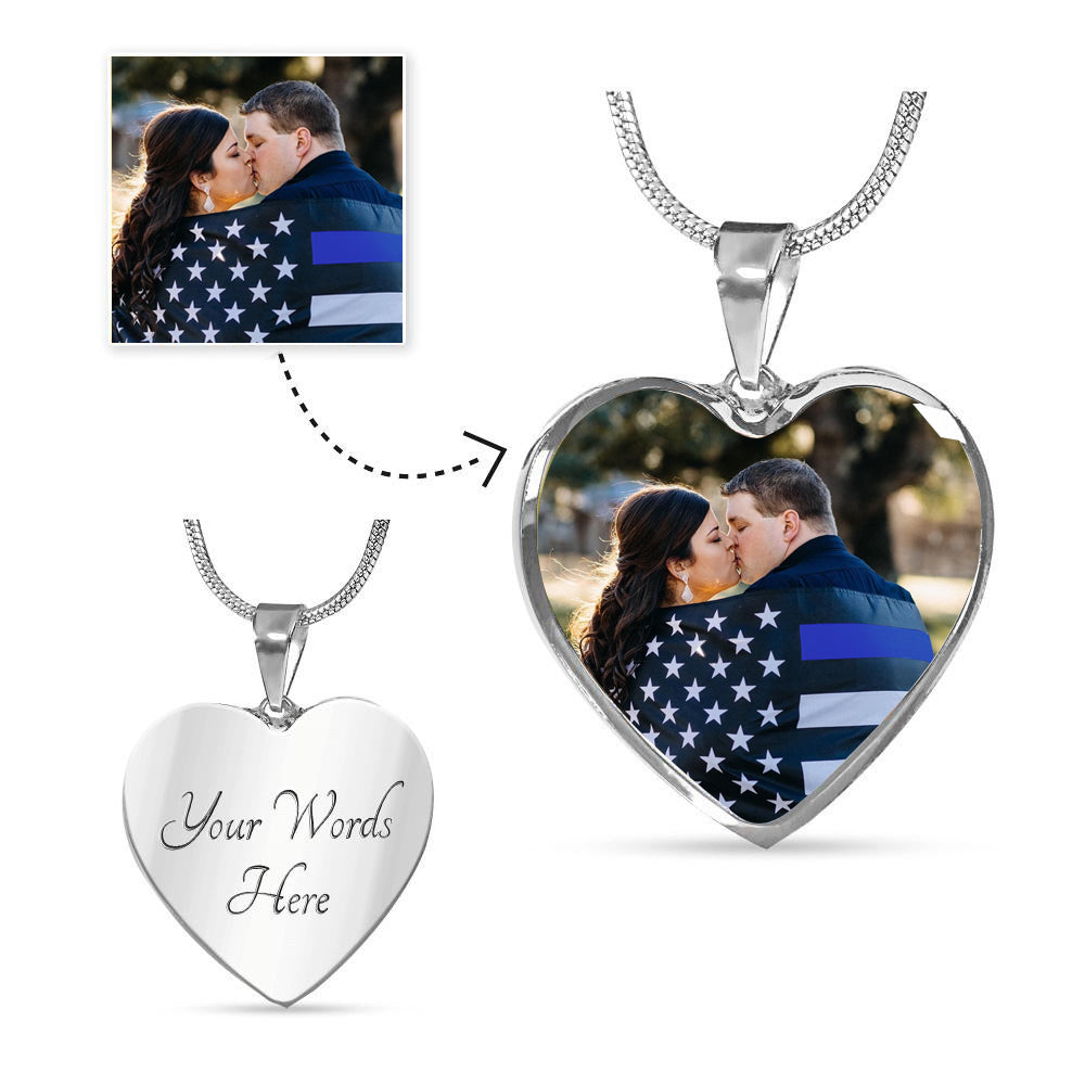 Customized Photo Heart Necklace with Phrase and Badge or Department Number