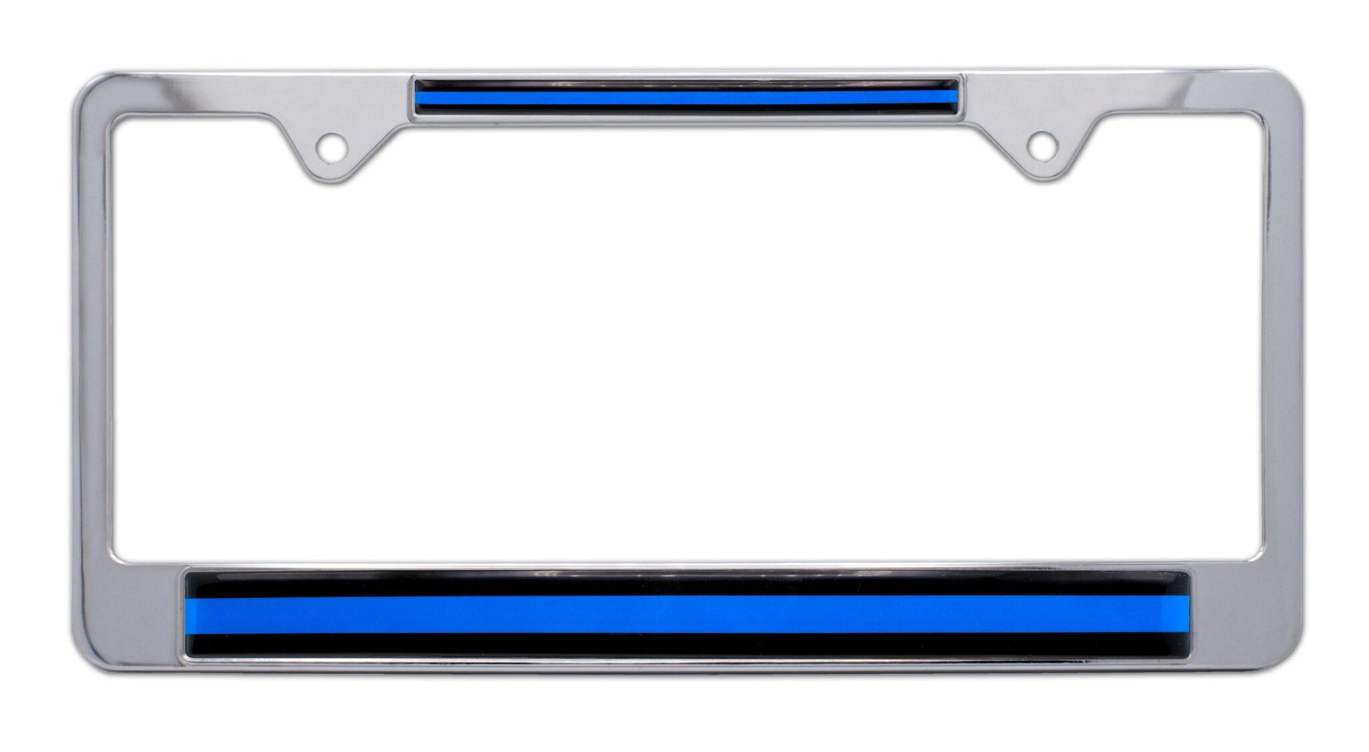 The Thin Blue Line License Plate Frame is a chrome license plate frame by Thin Blue Line Shop.