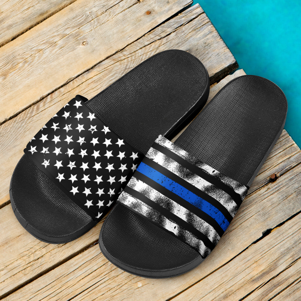 Thin Blue Stars and Stripes Slide Sandals